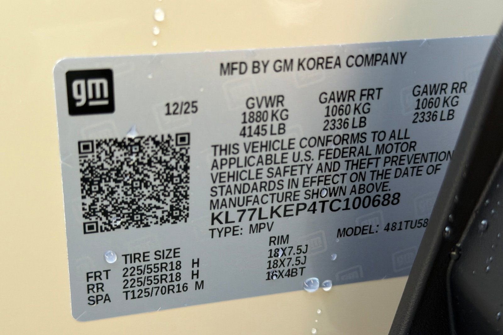 - Tires, 225/55R18 all-season, blackwall