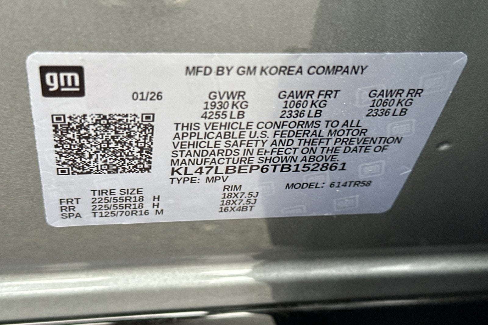 - Front Tire Size: 225/55R18
