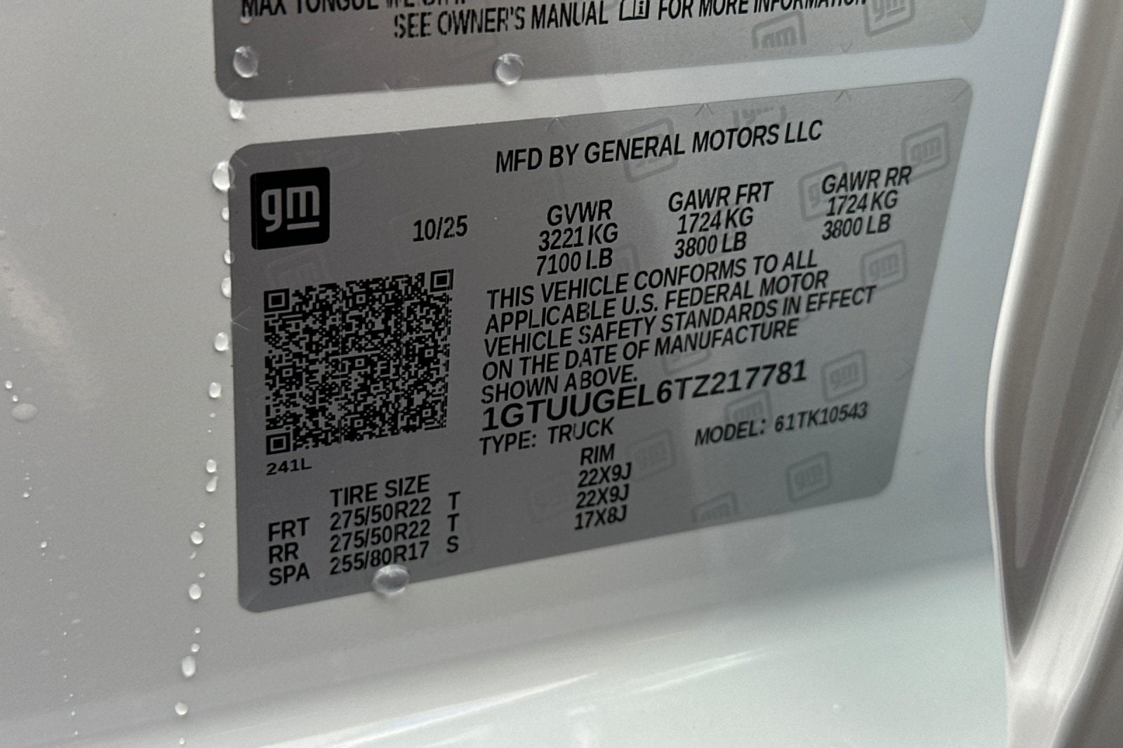 - Front Tire Size: 275/60R20SL