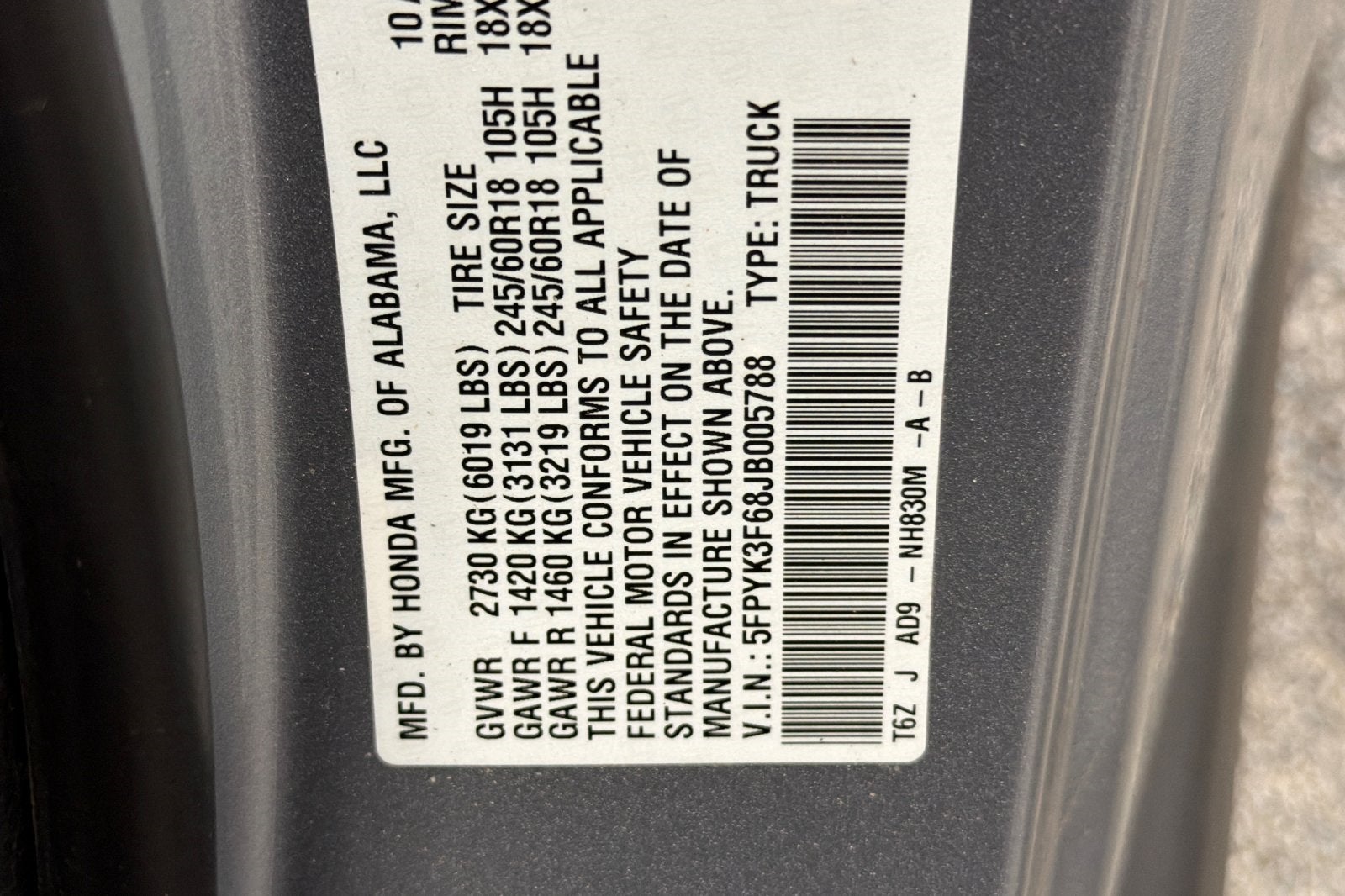 - Vehicle Name: Honda Ridgeline