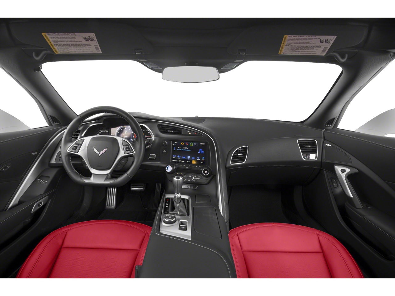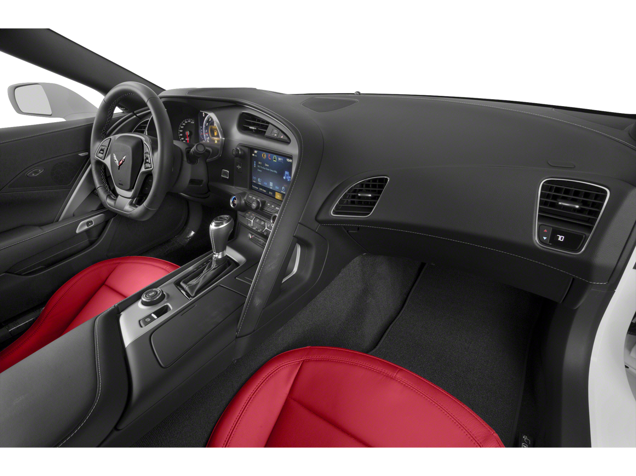 The Corvette's striking exterior design is complemented by its sleek, aerodynamic profile and bold styling cues. The removable carbon fiber roof panel adds a touch of exclusivity, allowing you to enjoy the open-air driving experience on sunny days.