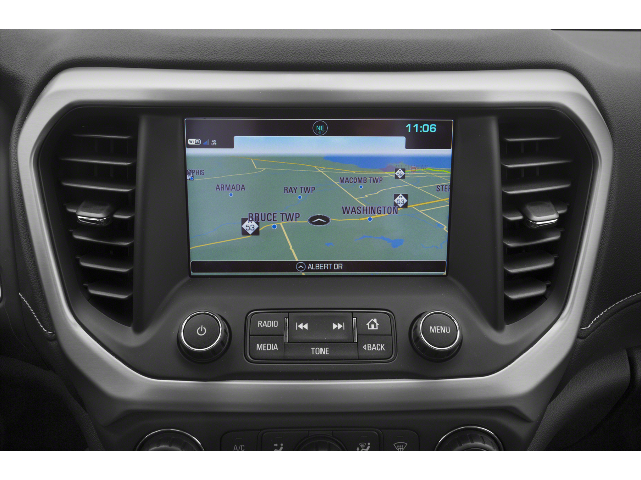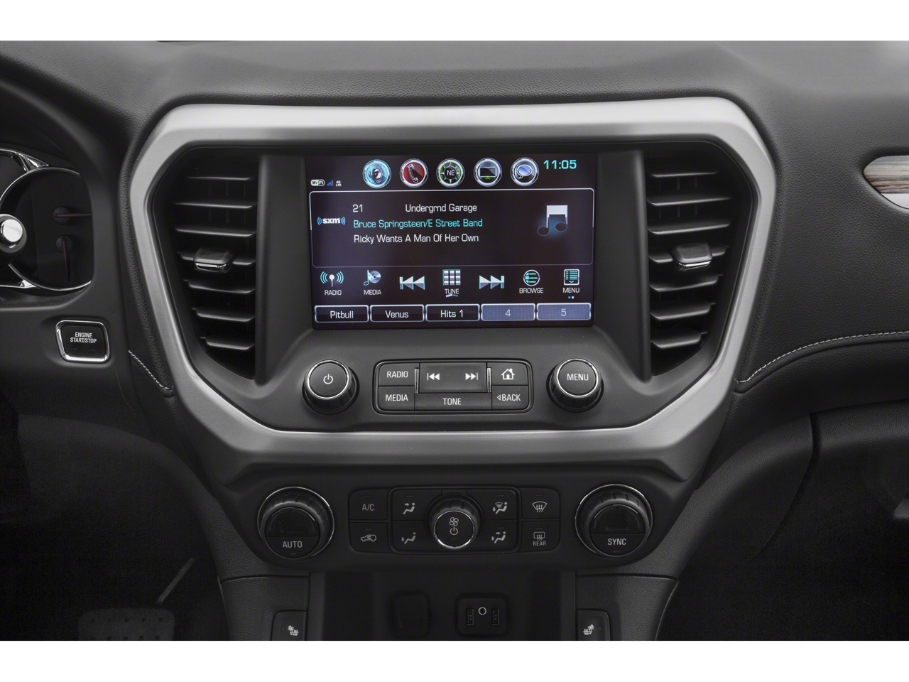 • Audio system, 8" diagonal Color Touch Screen Navigation with GMC Infotainment System, AM/FM/SiriusXM USB ports, auxiliary jack, Bluetooth® streaming audio for music and most phones, advanced phone integration featuring Apple CarPlay, Android Auto and voice-activated technology for radio and phone