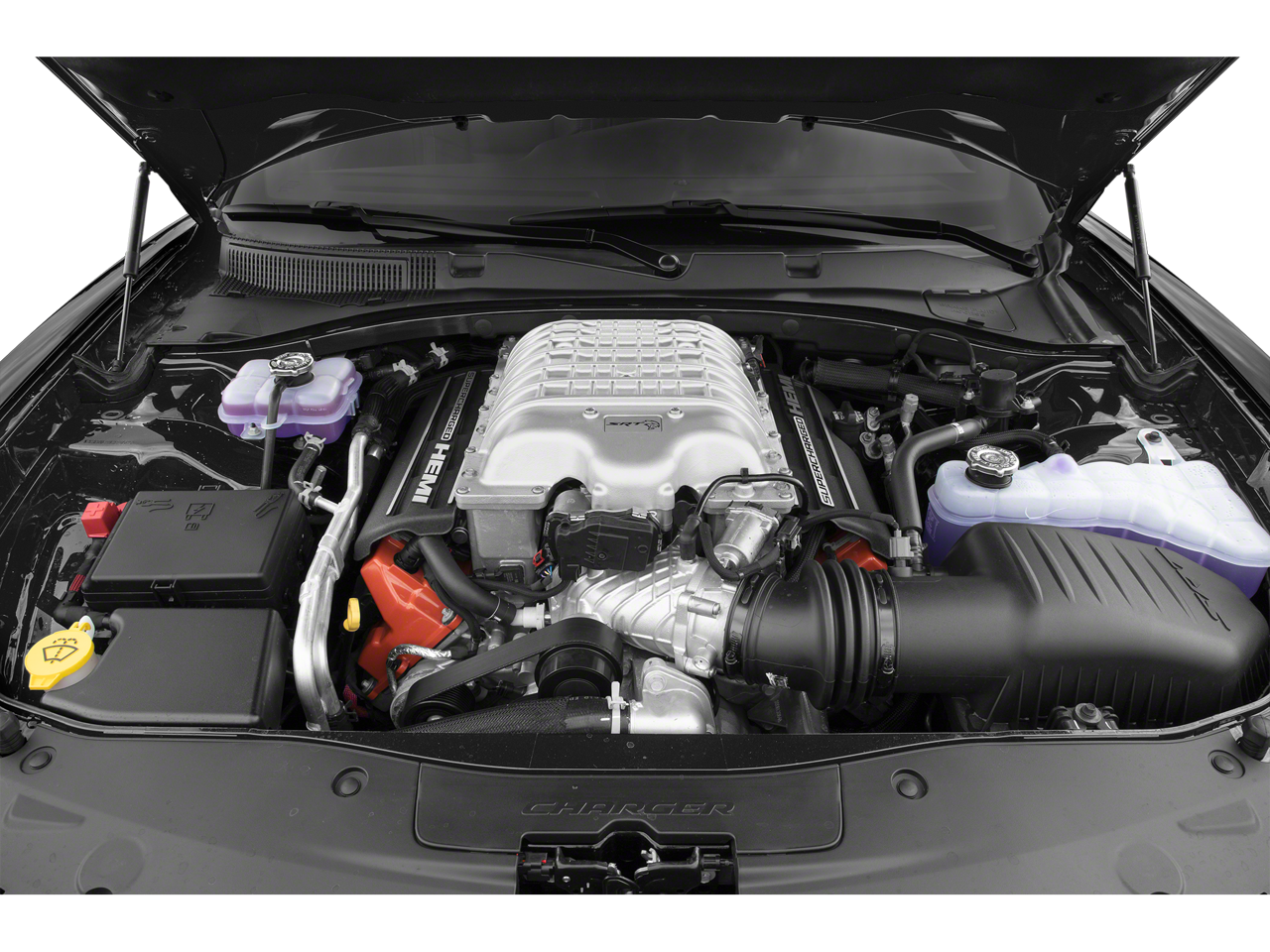 Recent Arrival! Clean CARFAX. CARFAX One-Owner. Charger SRT Hellcat Widebody, 4D Sedan, 6.2L 8-Cylinder SMPI Supercharged OHV, 8-Speed Automatic, RWD, Hellraisin, Black Artificial Leather. Odometer is 12351 miles below market average! RWD 8-Speed Automatic 6.2L 8-Cylinder SMPI Supercharged OHV