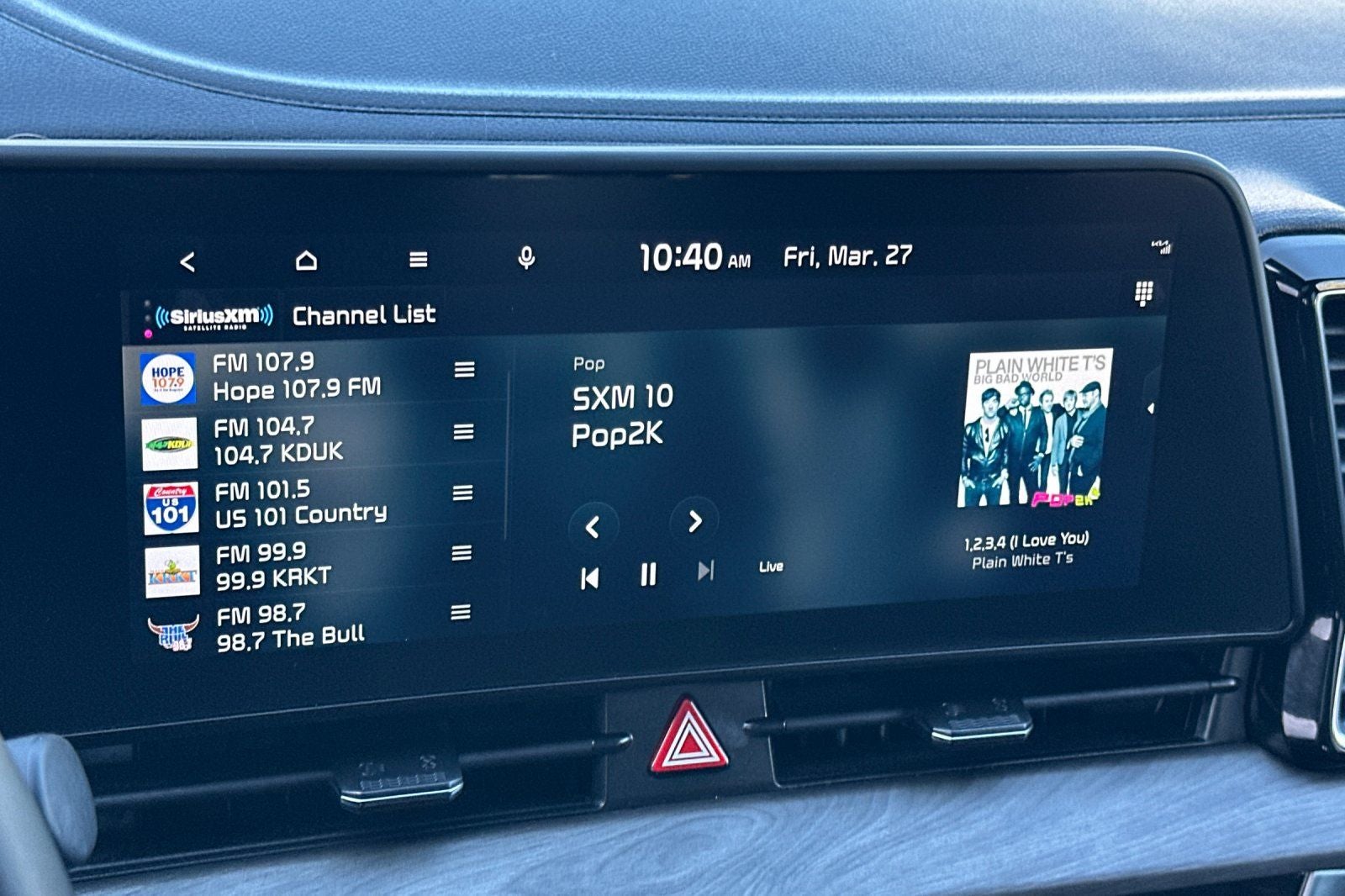 • Radio: AM/FM/HD Audio System -inc: 12.3" touchscreen w/navigation, 6 speakers, Apple Carplay and Android Auto, Kia Connect, voice recognition, WiFi, map OTA, satellite radio, steering wheel mounted audio controls and Bluetooth® phone and streaming audio