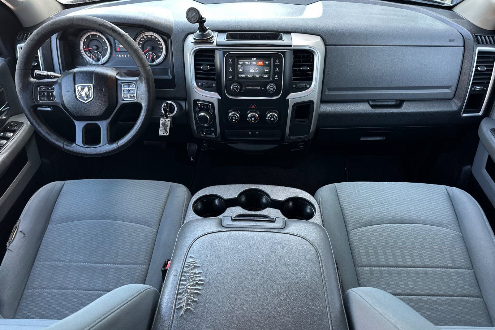 Designed to handle your toughest jobs, the 2017 Ram 1500 Big Horn offers a spacious and well-appointed interior with premium features like the Uconnect 3 infotainment system, 6-speaker audio, and a 40/20/40 split bench seat. Stay connected and in control with the media hub, USB ports, and steering wheel-mounted controls.