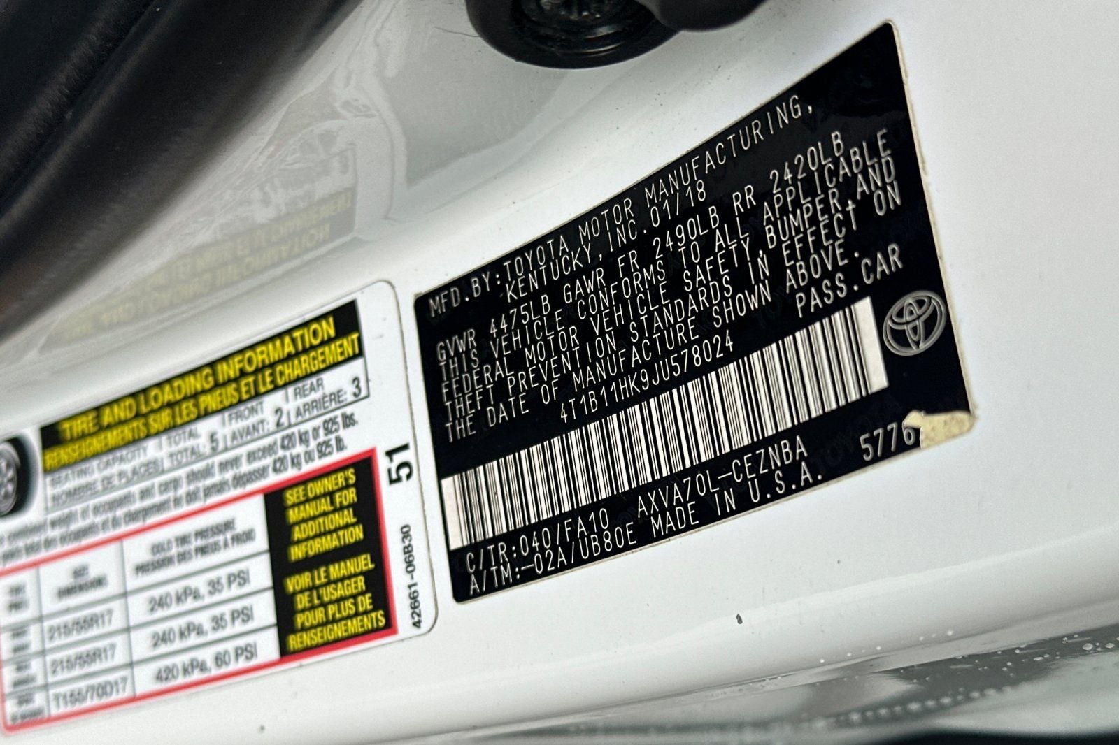 - Vehicle Name: Toyota Camry