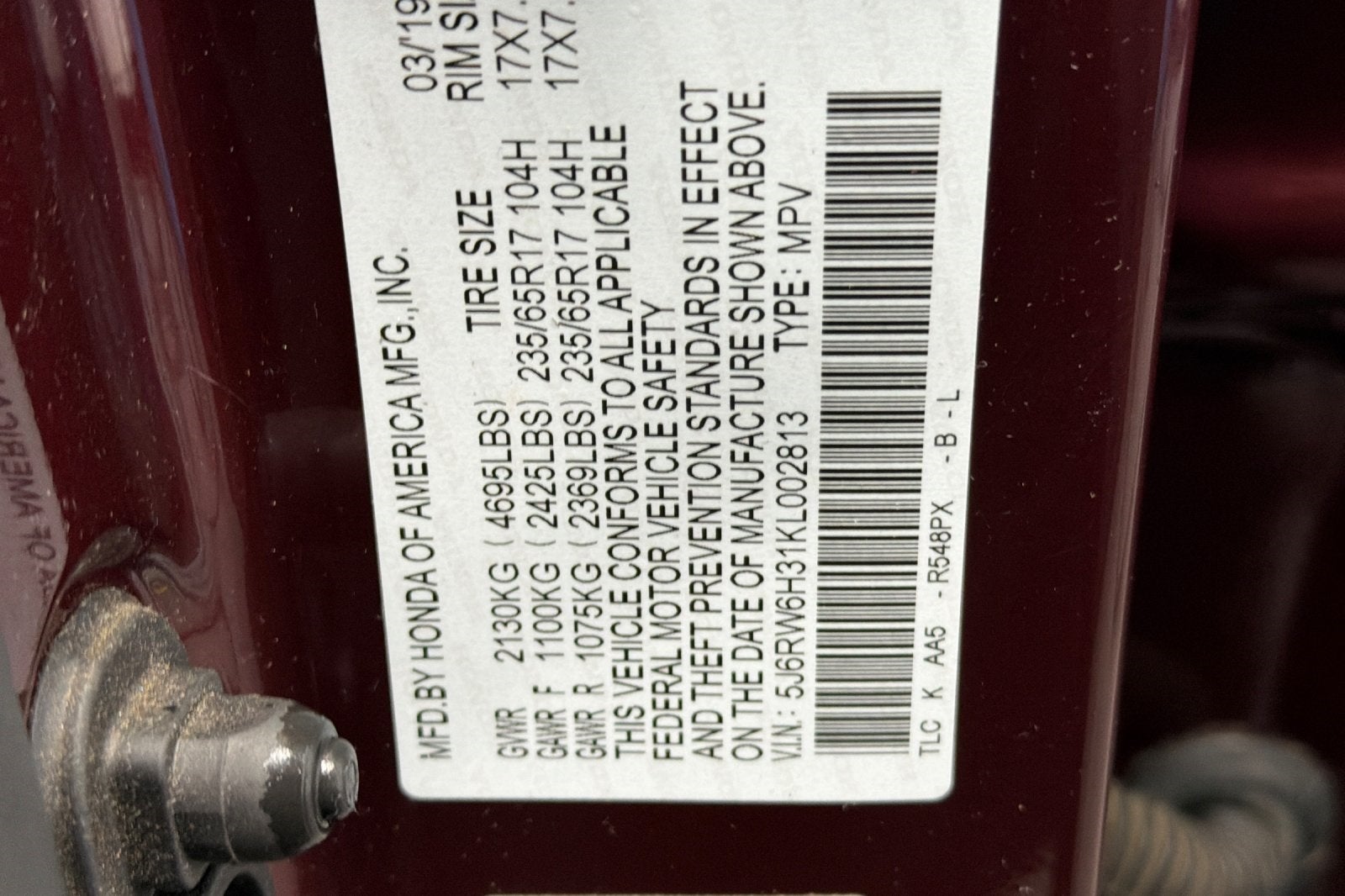 - Vehicle Name: Honda CR-V