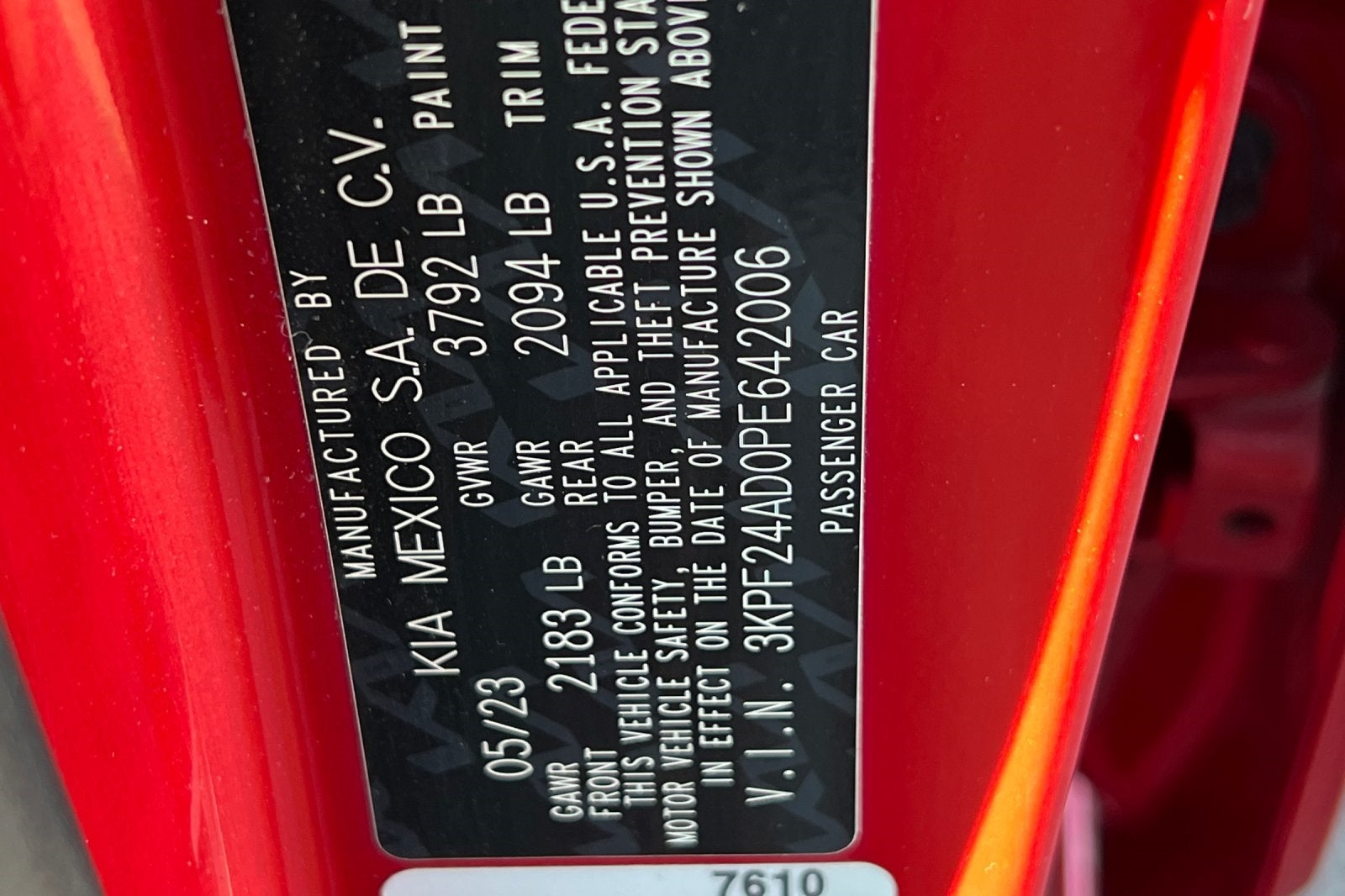 - Vehicle Name: Kia Forte