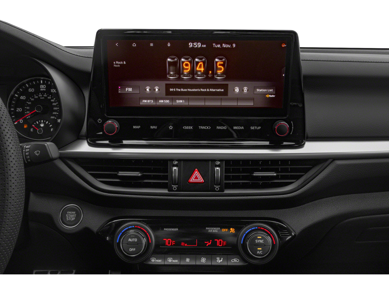 - Radio: 10.25" Display Audio -inc: 6 speakers, 10.25" touch screen, navigation, Kia Connect, HD radio, Apple CarPlay, Android Auto, Bluetooth® hands-free and USB input