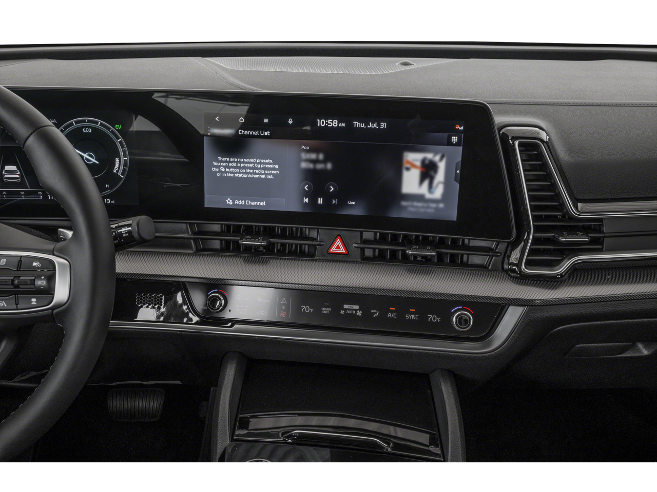 • Radio: AM/FM/HD Premium Audio System -inc: 400 watts, 12.3" touchscreen, navigation, 8 speakers, harman/kardon sound system, wireless Apple Carplay and Android Auto, Kia Connect, voice recognition, OTA map updates, USB, satellite radio, Bluetooth® phone w/streaming audio